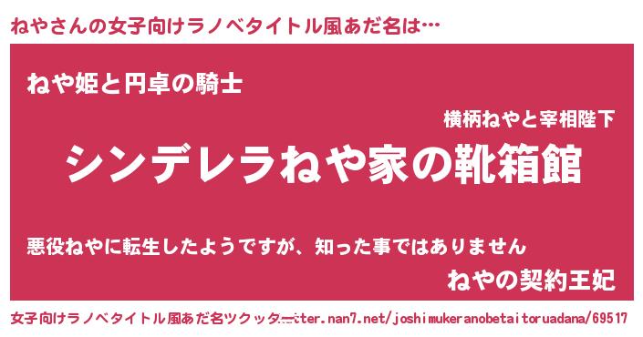 | 男性向けラノベタイトル風あだ名 | 『冴えないねやの育てかた』 |