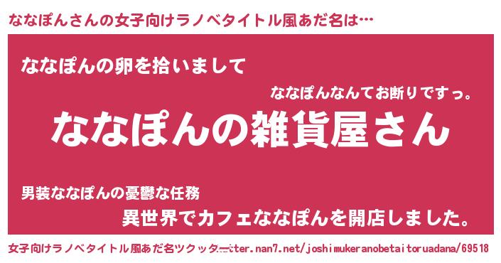 | 男性向けラノベタイトル風あだ名 | 『やはりななぽんの青春ラブコメはまちがっている 』 |