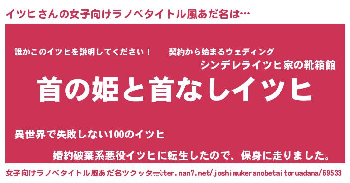 | 男性向けラノベタイトル風あだ名 | 『はたらくイツヒさま!』『緋弾のイツヒ』 |