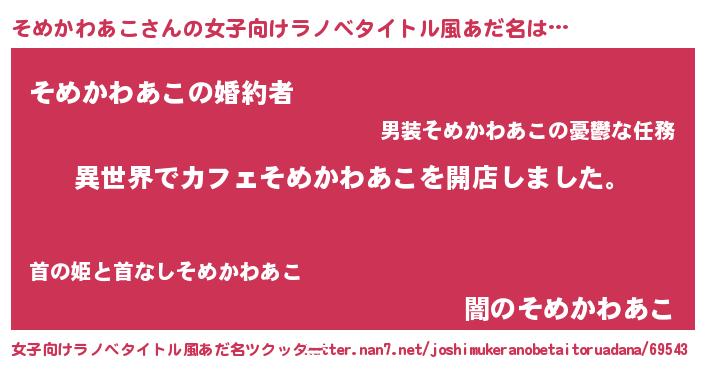 | 意味不明あだ名 | 『永久保存そめかわあこ』 |
