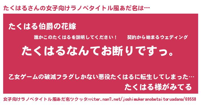 | 意味不明あだ名 | 『自称たくはる』『たくはるフォーエバー』 |