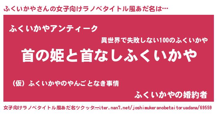 | 意味不明あだ名 | 『自称ふくいかや』『永久保存ふくいかや』 |
