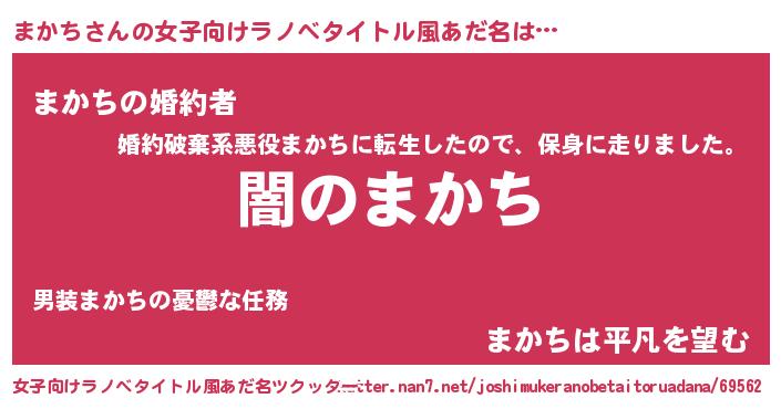 | 男性向けラノベタイトル風あだ名 | 『Re:まかちから始める異世界生活』 |