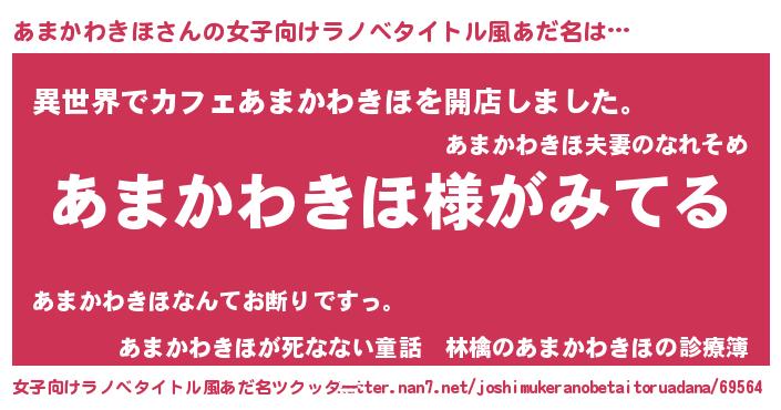| 男性向けラノベタイトル風あだ名 | 『あまかわきほの嫁は女の子じゃないと思った?』 |