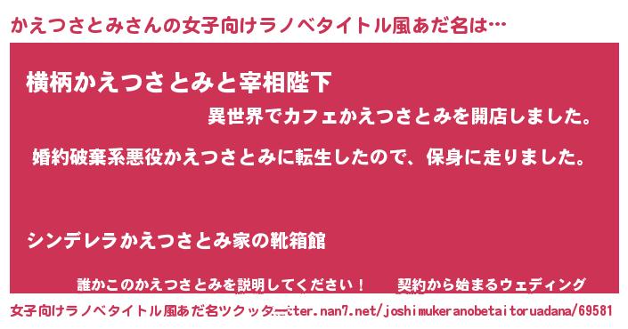 | 男性向けラノベタイトル風あだ名 | 『転生したらかえつさとみだった件』 |