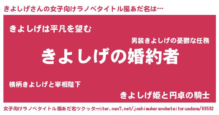 | 男性向けラノベタイトル風あだ名 | 『うちの娘の為ならば、俺はもしかしたらきよしげも倒せるかもしれない。』 |