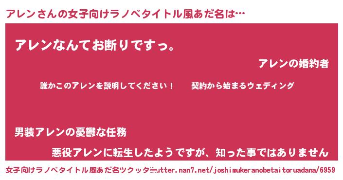 | ヒーロー風カッコイイあだ名 | 『スーパーアレン』『超時空戦士アレン』 |