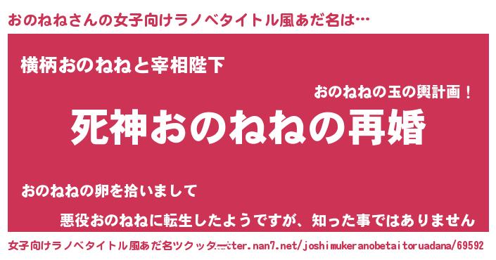 | 男性向けラノベタイトル風あだ名 | 『ノーゲーム・ノーオノネネ』 |