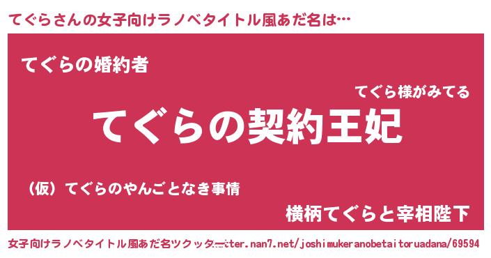 | 胡散臭い通販商品みたいなあだ名 | 『来世でも幸せになれる健康食品…その名も「てぐら」』 |