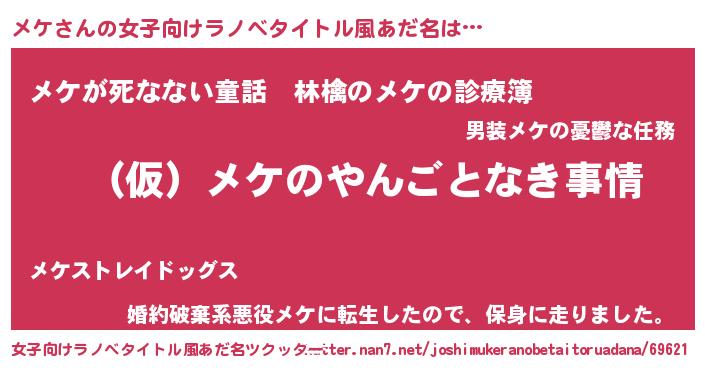 | 胡散臭い通販商品みたいなあだ名 | 『必ず成功するブレスレット…その名も「メケ」』 |
