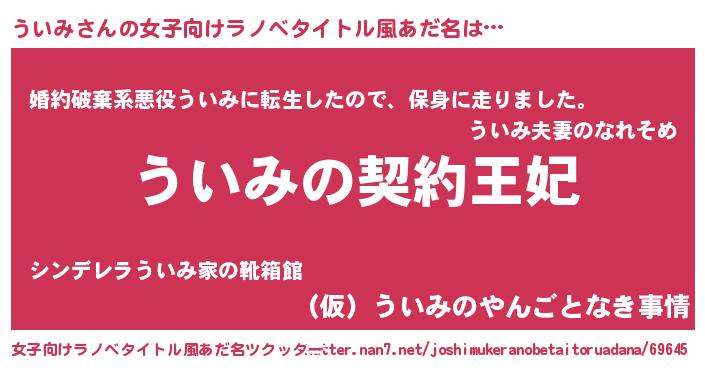 | 男性向けラノベタイトル風あだ名 | 『ういみという概念が存在しない退屈な世界 』 |