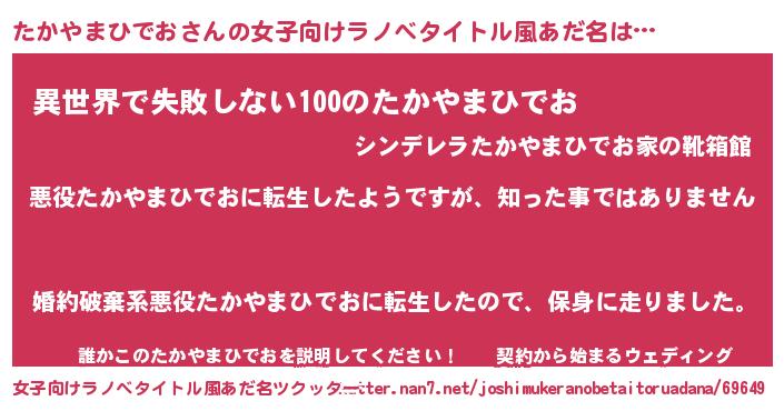 | 意味不明あだ名 | 『住所不定無職たかやまひでお(12歳)』 |