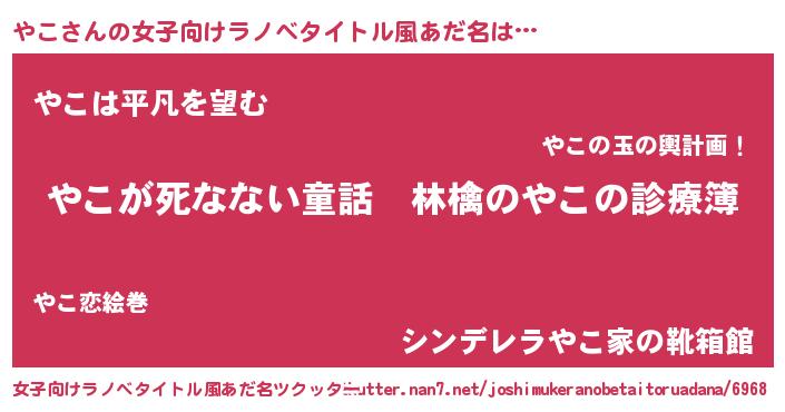 | 男性向けラノベタイトル風あだ名 | 『魔弾の王とやこ』 |