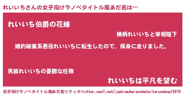 | 男性向けラノベタイトル風あだ名 | 『転生したられいいちだった件』 |