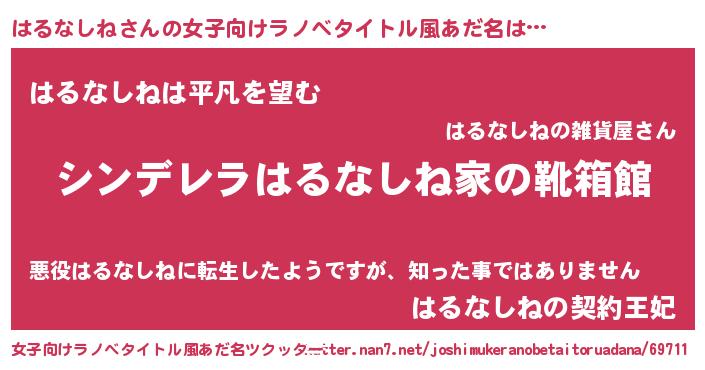 | 男性向けラノベタイトル風あだ名 | 『冴えないはるなしねの育てかた』 |