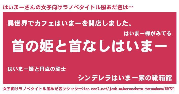 | 男性向けラノベタイトル風あだ名 | 『はたらくはいまーさま!』 |