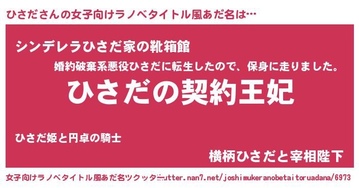 | 胡散臭い通販商品みたいなあだ名 | 『来世でも幸せになれる水素水…その名も「ひさだ」』 |