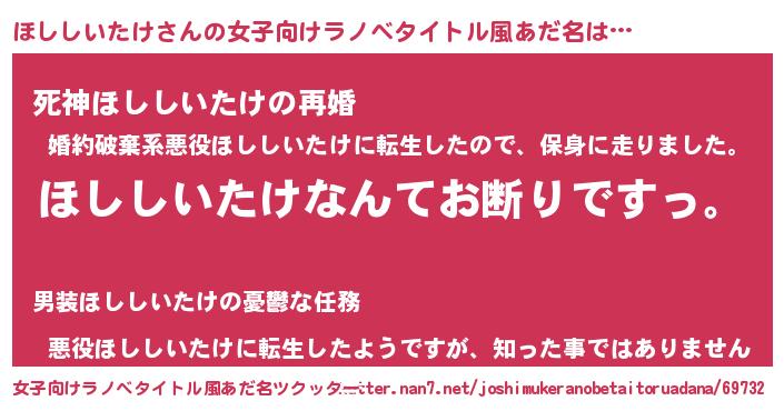 | 意味不明あだ名 | 『自称ほししいたけ』 |