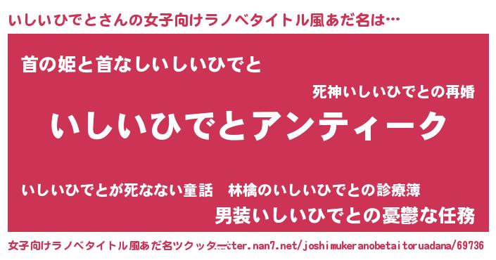 | 男性向けラノベタイトル風あだ名 | 『魔法科高校のいしいひでと』 |