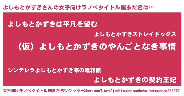 | 男性向けラノベタイトル風あだ名 | 『よしもとかずきの憂鬱』 |