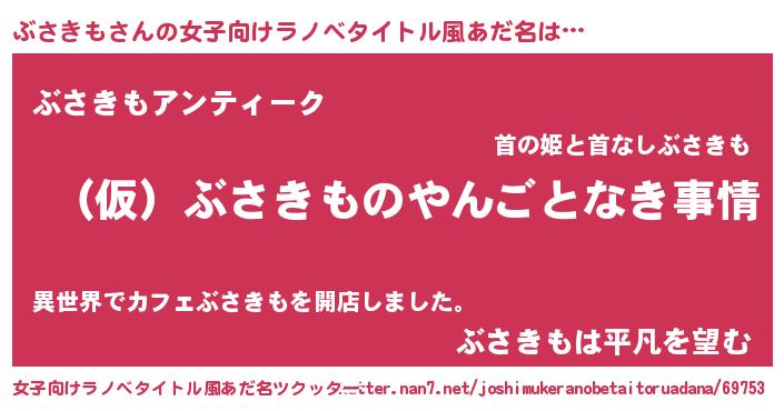 | 胡散臭い通販商品みたいなあだ名 | 『必ず成功する霊験あらたかなお札…その名も「ぶさきも」』 |