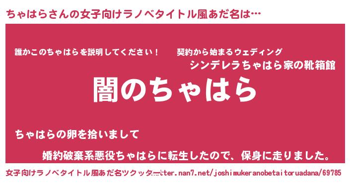 | 男性向けラノベタイトル風あだ名 | 『Re:ちゃはらから始める異世界生活』 |