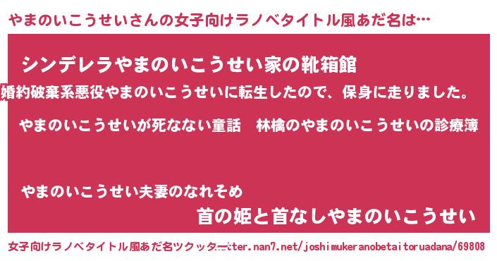| 意味不明あだ名 | 『住所不定無職やまのいこうせい(95歳)』 |