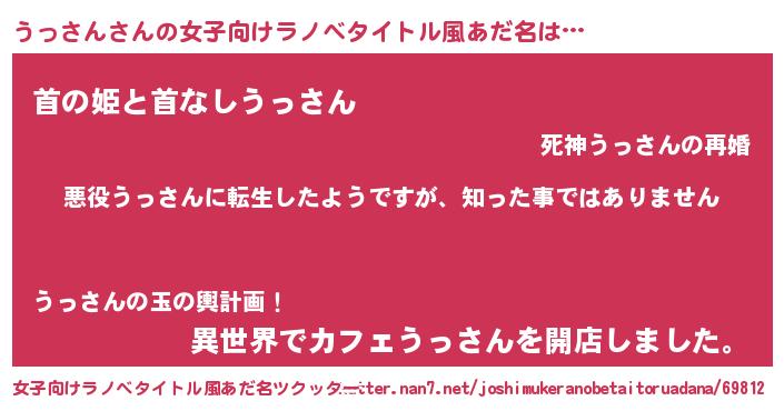 | 男性向けラノベタイトル風あだ名 | 『この素晴らしい世界にうっさんを!』 |