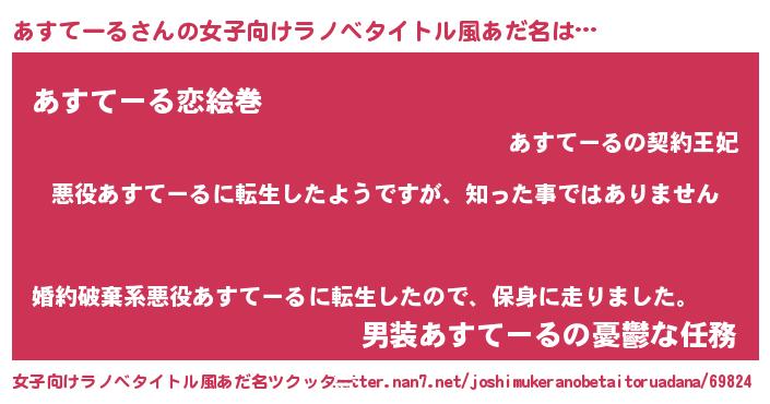 | 男性向けラノベタイトル風あだ名 | 『この素晴らしい世界にあすてーるを!』 |