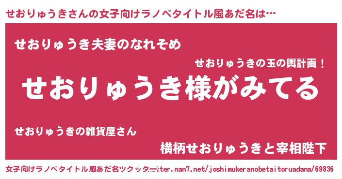 | 男性向けラノベタイトル風あだ名 | 『せおりゅうきの嫁は女の子じゃないと思った?』 |