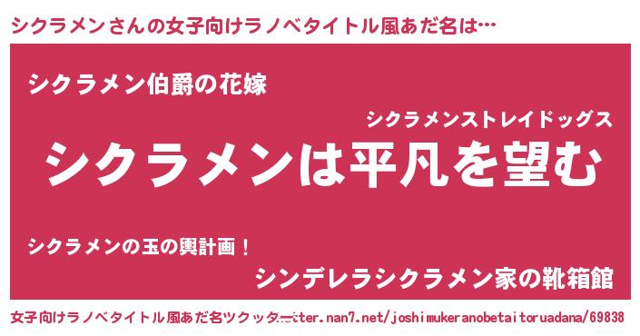 | 胡散臭い通販商品みたいなあだ名 | 『信頼と実績のペンダント…その名も「シクラメン」』 |