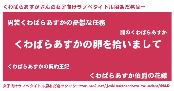 | 意味不明あだ名 | 『とにかく怪しいくわばらあすか』 |