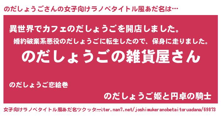 | 男性向けラノベタイトル風あだ名 | 『やはりのだしょうごの青春ラブコメはまちがっている 』 |