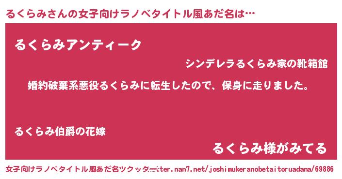 | ヘコむあだ名 | 『るくを』『牛乳』『るくにゅー』 |