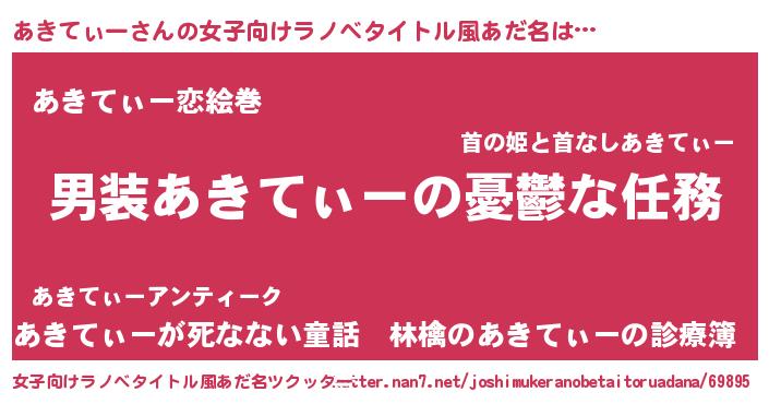 | 男性向けラノベタイトル風あだ名 | 『うちのあきてぃーが世界を掌握している!』 |