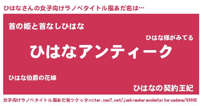 | 意味不明あだ名 | 『自称ひはな』『永久保存ひはな』 |
