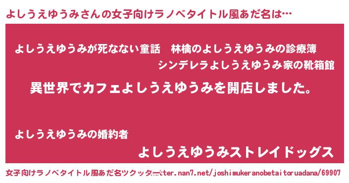 | 胡散臭い通販商品みたいなあだ名 | 『前代未聞の健康食品…その名も「よしうえゆうみ」』 |