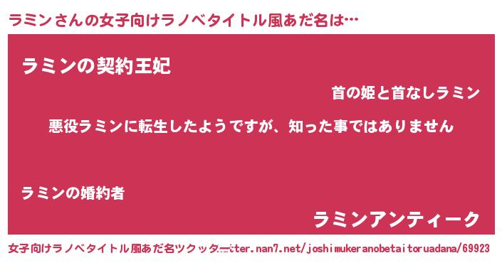 | 胡散臭い通販商品みたいなあだ名 | 『あなたにだけ特別に提供する世界で10本だけ現存している希少なブランデー…その名も「ラミン」』 |
