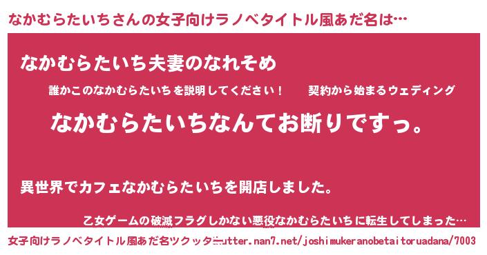 | 意味不明あだ名 | 『自称なかむらたいち』 |