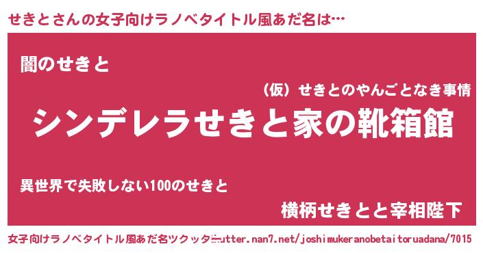 | 男性向けラノベタイトル風あだ名 | 『緋弾のセキト』『せきとの憂鬱』 |