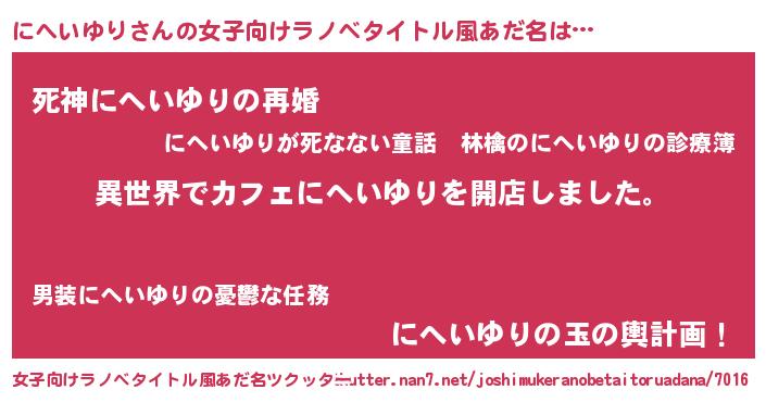 | 男性向けラノベタイトル風あだ名 | 『誰もが恐れるあのにへいゆりが、ぼくの専属メイドになるようです。』 |
