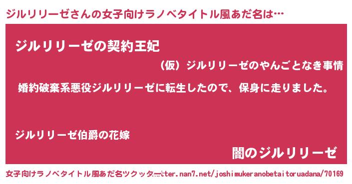 | 男性向けラノベタイトル風あだ名 | 『ジルリリーゼスレイヤー』 |
