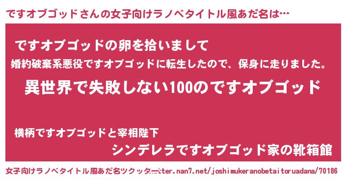 | 男性向けラノベタイトル風あだ名 | 『ですオブゴッドという概念が存在しない退屈な世界 』 |