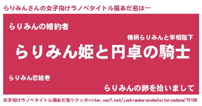 | 男性向けラノベタイトル風あだ名 | 『らりみんの憂鬱』 |