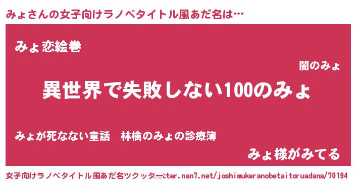 | 胡散臭い通販商品みたいなあだ名 | 『絶対に幸福をもたらす健康食品…その名も「みょ」』 |