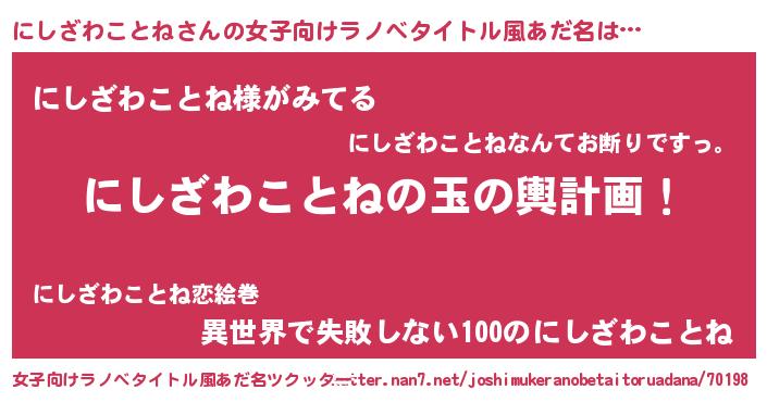 | 胡散臭い通販商品みたいなあだ名 | 『伝統あるサプリメント…その名も「にしざわことね」』 |
