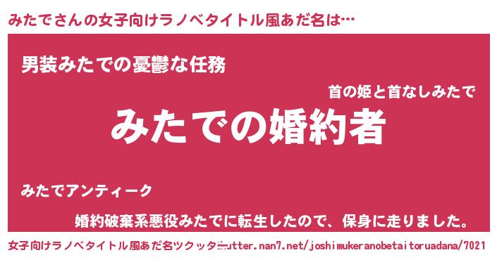 | ヒーロー風カッコイイあだ名 | 『ウルトラみたでマン』『究極戦士ミタデ』 |
