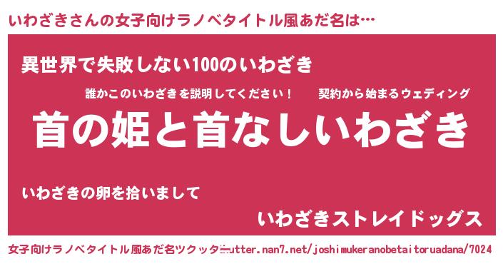 | ファンタジー風あだ名 | 『イワディッシュ』『ゼイワトゥ』 |