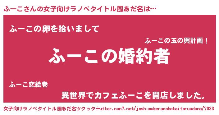 | 男性向けラノベタイトル風あだ名 | 『うちの娘の為ならば、俺はもしかしたらふーこも倒せるかもしれない。』 |