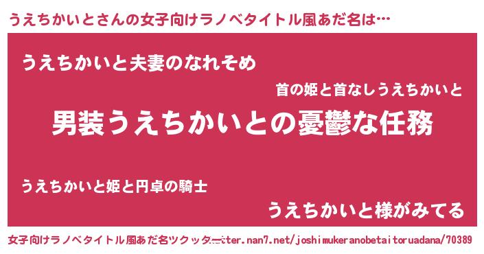 | 男性向けラノベタイトル風あだ名 | 『うちのうえちかいとが世界を掌握している!』 |